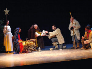 Avec humour et poésie, les professeurs offrent à la communauté de l’école un jeu scénique racontant l’histoire de la Nativité à travers le regard de trois bergers.